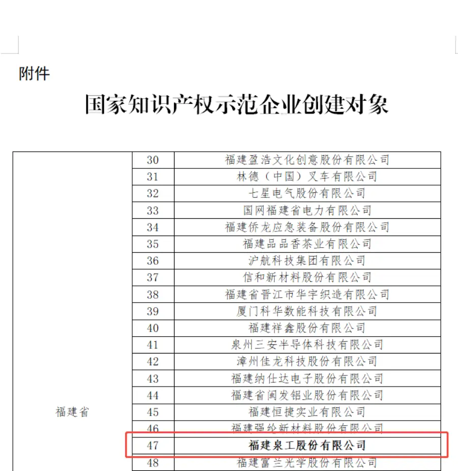 Anerkennung auf nationaler Ebene: Quangong Machinery Co., Ltd. wurde als Kandidat für das National Intellectual Property Demonstration Enterprise-Programm ausgewählt.