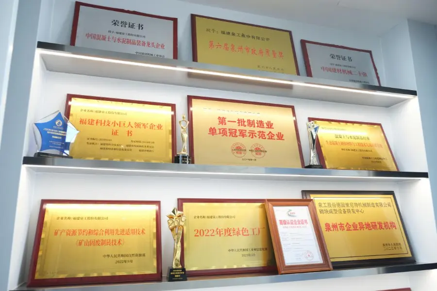Als führendes Unternehmen in der inländischen Blockformanlagenindustrie hat Quangong Machinery Co., Ltd. konsequent an der technologischen Innovation als zentraler treibender Kraft festgehalten und die Arbeit an geistigem Eigentum tief in seine Unternehmensentwicklungsstrategie und das gesamte Geschäftsmanagement integriert. Das Unternehmen stärkt kontinuierlich die Kerntechnologieforschung und die Gestaltung hochwertiger Patente in Schlüsseltechnologiebereichen wie ökologischem Blockformen, Nutzung fester Abfallressourcen und intelligenten kompletten Ausrüstungssätzen und baut ein systematisches System zur Verwaltung geistigen Eigentums auf, das Forschung und Entwicklung, Fertigung und Marktanwendungen abdeckt und so eine solide Unterstützung für die qualitativ hochwertige Entwicklung des Unternehmens bietet.